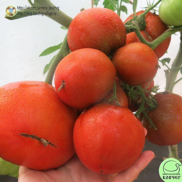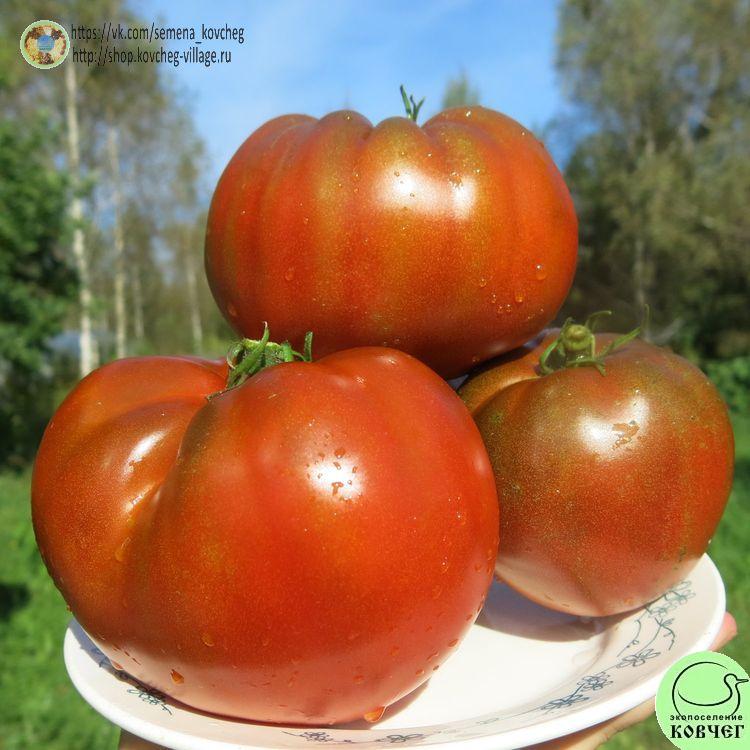 Среднеранний сорт томата серии «Гном томатный» с довольно крупными (150-250г, некоторые плоды до 450г) плодами кирпичного цвета с тёмными плечиками. Урожайный и вкусный!